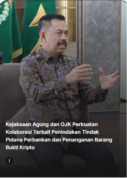 Kejaksaan Agung berkolaborasi dengan Otoritas Jasa Keuangan (OJK) untuk memperkuat penindakan hukum terkait tindak pidana perbankan dan penanganan barang bukti berupa aset kripto. Sinergisitas anyar itu sekaligus menunjukkan bahwa kelas aset baru itu juga akan masuk ke dalam garis bidik penindakan hukum pidana oleh pihak Kejaksaan.