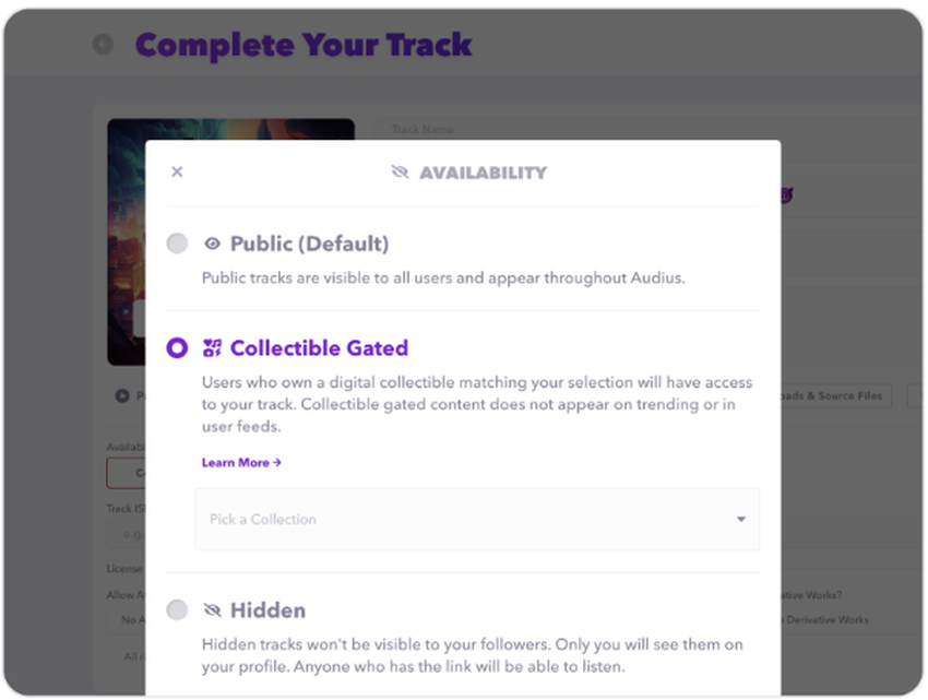 Musisi yang mengunggah lagu-lagu eksklusif dapat mengubah status ketersediaannya dari Public ke Gated Collection dan memilih koleksi NFT yang akan mengatur aksesnya. Dengan begitu, para penggemar yang memegang koleksi NFT tersebut dapat membuka akses ke lagu-lagu eksklusif itu.
