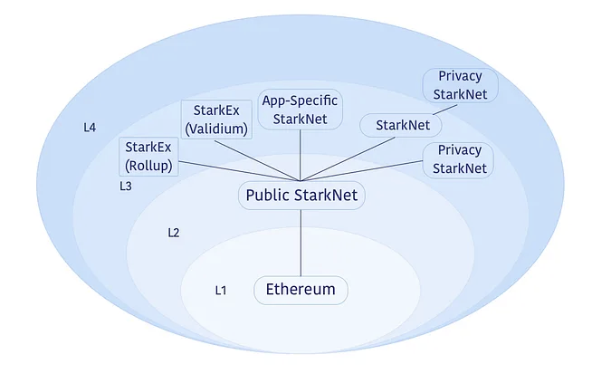 Tesis multi-layer StarkWare menghadirkan blockchain L2 sebagai solusi skalabilitas tujuan umum untuk Ethereum. Sementara itu, L3 yang dibangun di atas StarkNet menawarkan penyesuaian dan eksperimen dengan biaya lebih rendah tanpa perlu membangun di atas layer-1 (L1) Ethereum secara langsung.