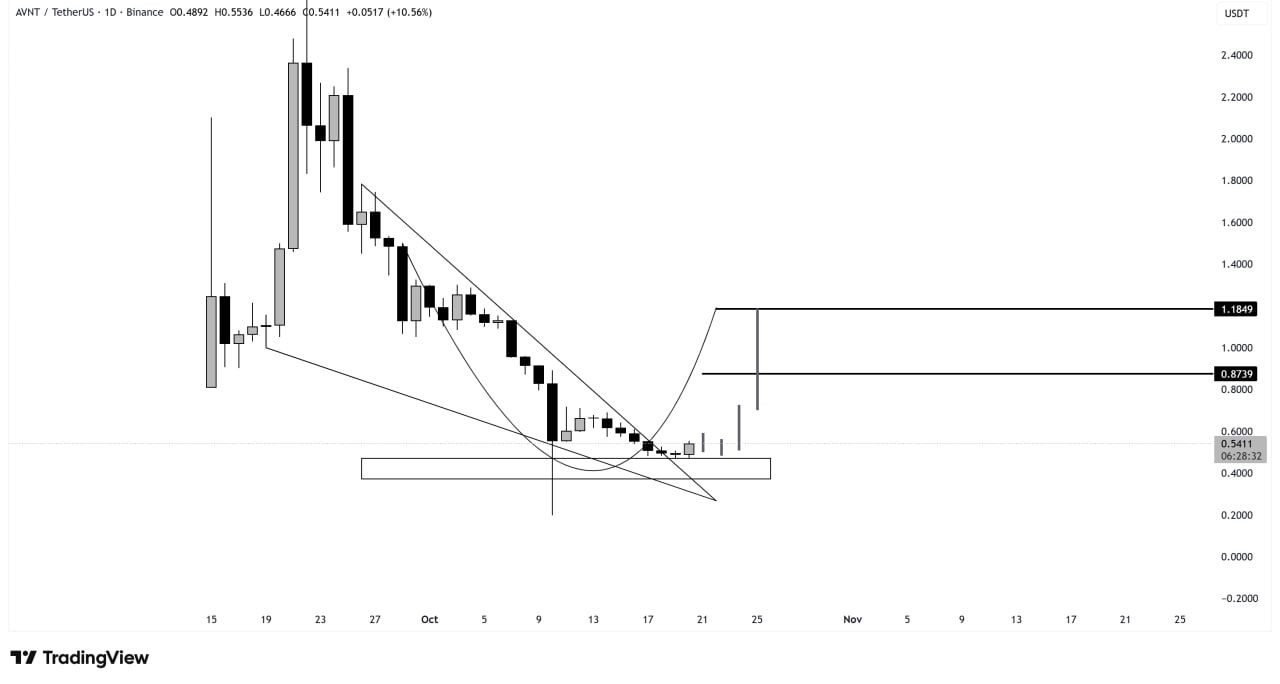 Sementara itu, ekspansi jaringan yang berkelanjutan juga mendorong momentum harga AVNT. Setelah pencapaian TVL, token ini mencatat lonjakan tajam dalam nilai.