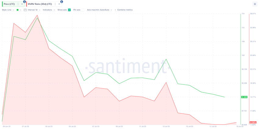 Sponsored SponsoredPandangan ini didukung oleh rasio MVRV, yang mengukur posisi keuangan bersih dari para holder LTC saat ini. Grafik di atas menunjukkan bahwa mayoritas investor yang membeli Litecoin dalam 30 hari terakhir ini masih menghasilkan profit sebesar 8%.