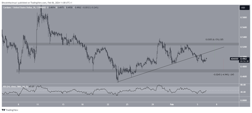 Analisis teknikal pada grafik dua jam jangka pendek menunjukkan bahwa tren ADA cenderung bearish berdasarkan aksi harganya.