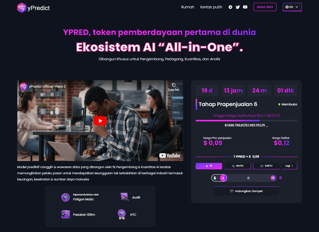 Dalam industri kripto yang dinamis, terus muncul proyek-proyek baru dengan potensi pertumbuhan yang menggiurkan. Salah satu proyek yang menarik perhatian adalah yPredict, sebuah platform prediksi yang menggunakan teknologi kecerdasan buatan (AI) untuk menganalisis pasar kripto. Namun, yang membuat yPredict semakin menarik adalah token utilitasnya sendiri, dengan kode ticker YPRED, yang memiliki potensi untuk melejit nilainya di masa depan.