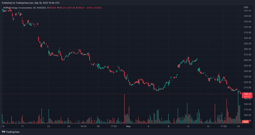 Pada tanggal 15 Agustus, MSTR sempat diperdagangkan sekitar US$350. Namun, 10 hari setelah itu, harganya ambrol ke titik US$250. Selanjutnya, pada bulan September harganya turun lagi menjadi US$210. Tetapi, setelah itu, harganya sempat mengalami kenaikan ke level US$260. Sayangnya, sejak saat itu, harganya lagi-lagi anjlok dan sekarang masih bertengger di bawah level US$200.