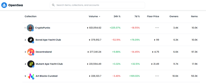 Untuk itu, kamu bisa menggunakan DappRadar dan OpenSea yang berguna untuk menemukan proyek paling populer dan untuk memeriksa volume trading sebuah koleksi NFT.