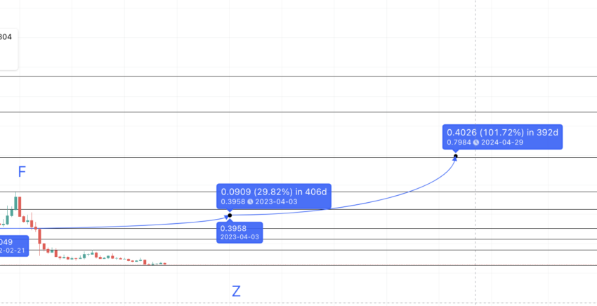Oleh karena itu, level tertinggi berikutnya dari US$0,79854 bisa jadi terbentuk dalam waktu 273 hari dari bulan 29 April 2024. Garis resistance berikutnya berada di level US$1,0948. Dalam 273 hari, GRT akan menembus level ini. Titik terendah dari sini bisa turun menjadi US$0,5514 — yang merupakan titik lower high pada pola kedua.