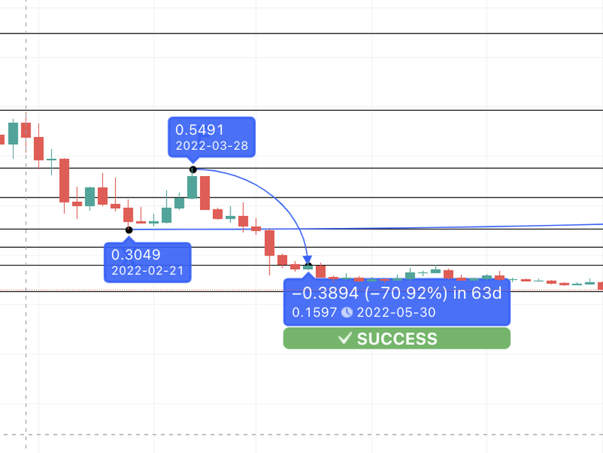 Jadi, bila kita mengambil titik referensi sebagai F, titik terendahnya akan menjadi 70,375% lebih rendah atau pada US$0,1597.