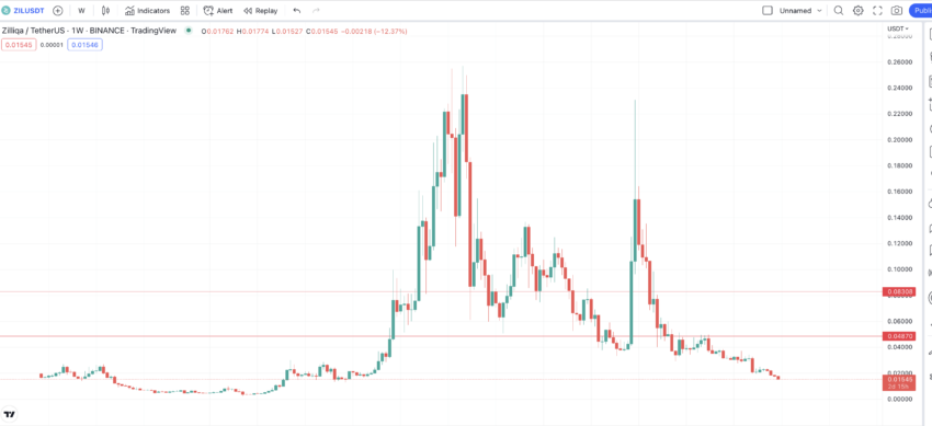 Sekarang, mari kita beralih ke analisis teknikal untuk memprediksi pergerakan harga Zilliqa (ZIL) dalam jangka pendek dan panjang. Menganalisis grafik memungkinkan kita untuk menemukan pola yang sangat penting. Dengan ini, kita bisa merumuskan proyeksi harga berdasarkan informasi yang didukung data.