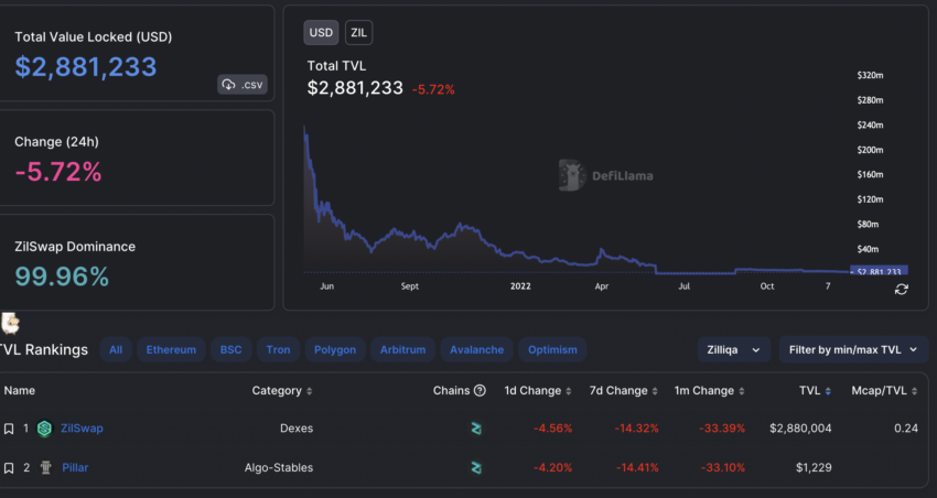 - Zilliqa memiliki kehadiran DeFi yang semakin berkembang yang dipimpin oleh ZilSwap DEX. Saat ini, Zilliqa menempati peringkat ke-90 dalam hal TVL DeFi.