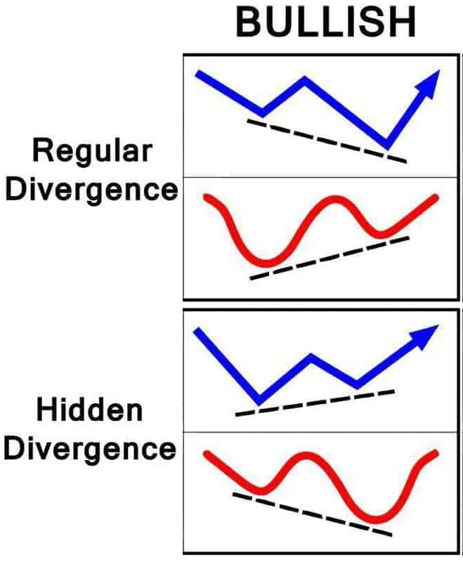 Perbedaan antara regular dan hidden bullish divergence terletak pada kondisi tren dan pola pergerakan harga yang mengiringinya: