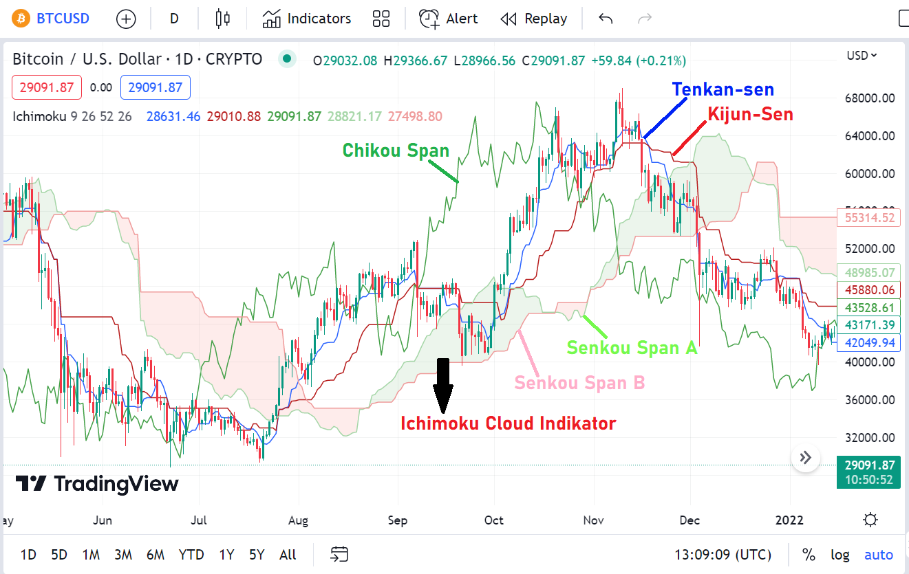 Buat para trader yang suka mengikuti trend di pasar, baik saham, forex maupun cryptocurrency, perlu memiliki alat analisis teknikal yang memberikan sinyal beli atau jual. Salah satu indikator teknikal yang bisa berguna secara cepat dalam trading crypto adalah Ichimoku Kinko Hyo atau Ichimoku Cloud.