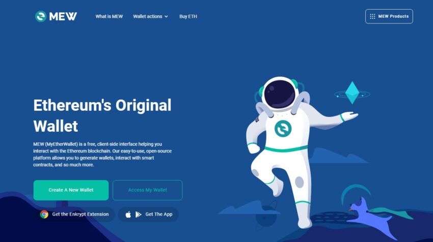 MyEtherWallet, atau MEW, adalah wallet lainnya yang sudah ada sejak lama, dan pertama kali diluncurkan pada tahun 2016. Seperti MetaMask, MEW utamanya juga berfokus pada jaringan Ethereum.