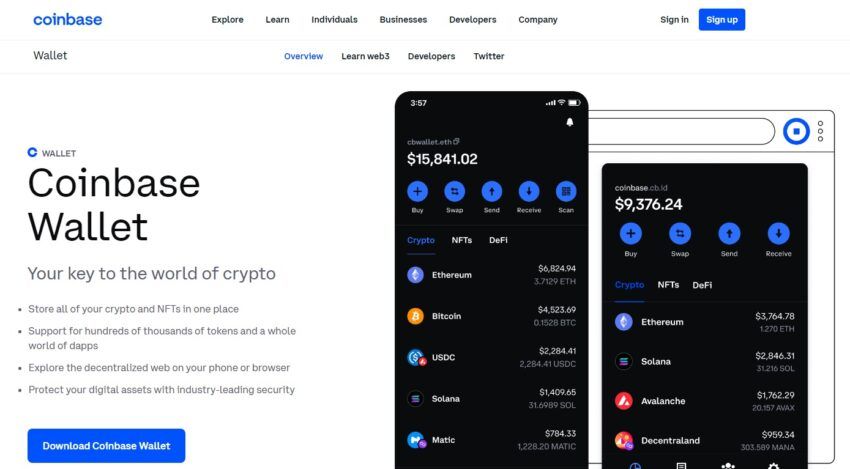 Coinbase meluncurkan non-custodial wallet mereka sendiri pada tahun 2018, dan telah menjadi pilihan populer di kalangan investor kripto karena pengalaman penggunanya yang sederhana dan familiar. Wallet ini punya kompatibilitas yang lebih besar dengan jangkauan jaringan blockchain yang juga lebih luas daripada wallet yang disebutkan di atas.