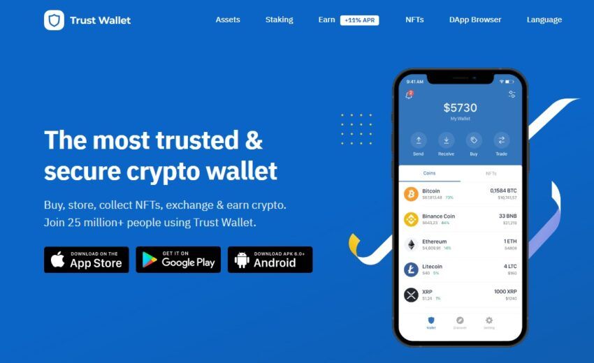 Trust Wallet yang didukung oleh Binance juga adalah penyedia non-custodial wallet populer. Trust Wallet kompatibel dengan berbagai blockchain dan juga mendukung beragam dApp di ekosistem Ethereum dan yang kompatibel dengan EVM. Selain itu, wallet ini juga mendukung NFT dan koleksi seni digital. Pengguna dapat menjalankan staking kripto proof-of-stake secara langsung di dalam aplikasinya.
