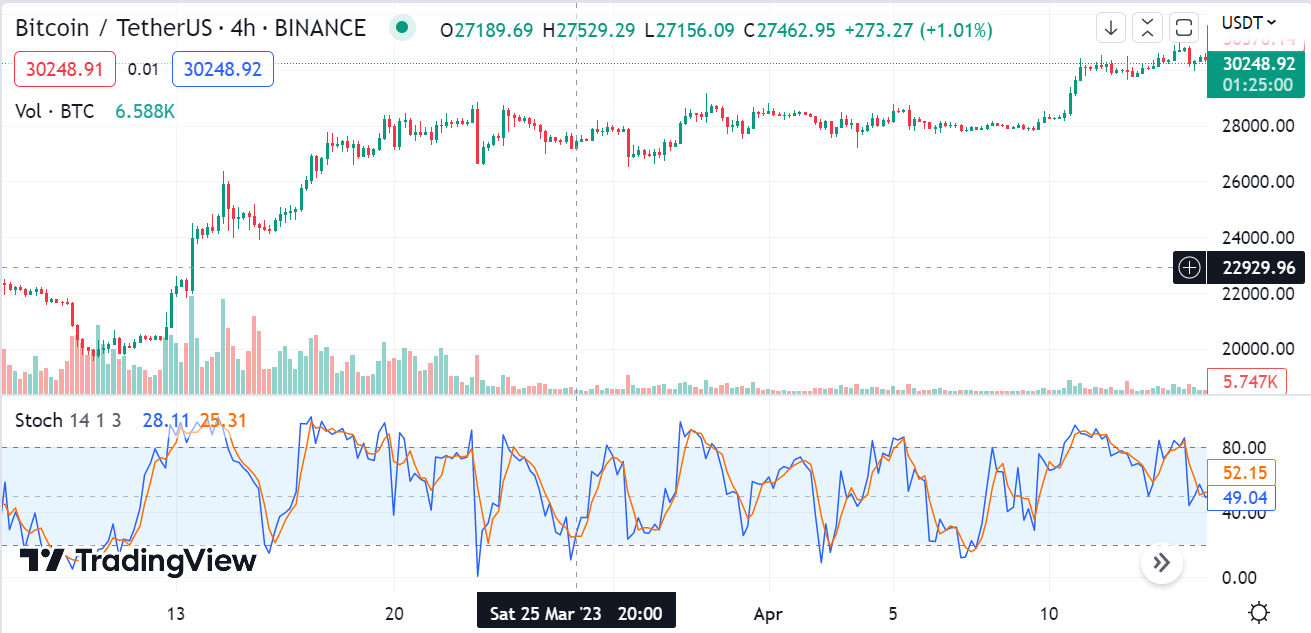 Stochastic oscillator adalah indikator teknikal yang berguna dalam analisis teknikal untuk mengidentifikasi momentum pergerakan harga dari cryptocurrency. Indikator ini dapat memberikan sinyal jenuh jual dan jenuh beli yang menjadi momen untuk masuk ke pasar.