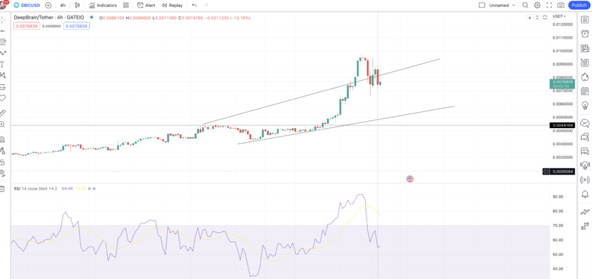 DeepBrain Chain tampaknya menjadi salah satu proyek kombinasi kecerdasan buatan dan teknologi blockchain yang lebih kuat. Oleh karena itulah, reli crypto AI berhasil mendorong harga DBC, native token proyeknya, naik 111,62% week-on-week.