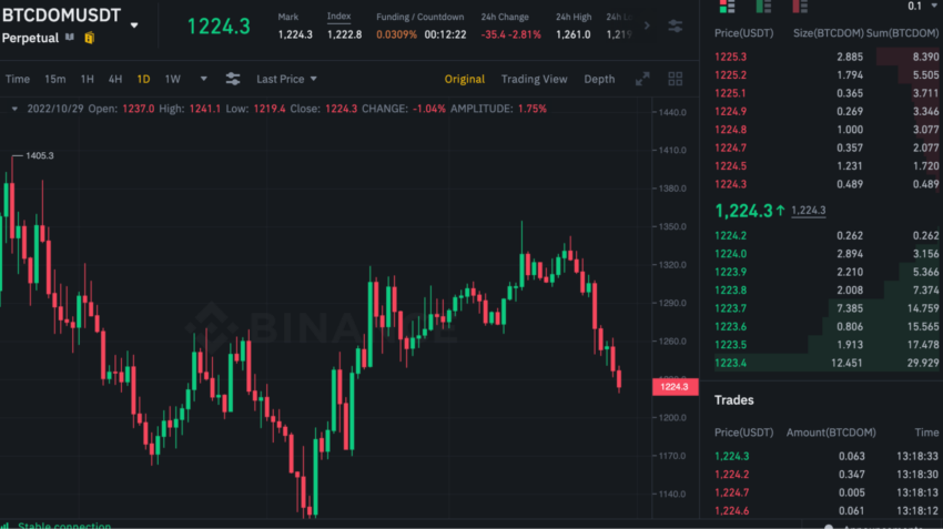 BTCD bukan hanya sebuah indeks. Sebagai gantinya, di Binance, Anda dapat memperdagangkan perpetual futures BTCDOM/USDT. Oleh karena itu, menggunakan BTC Dominance sebagai instrumen trading crypto jangka pendek dan leverage juga memungkinkan, asalkan Anda tahu cara membaca grafik Bitcoin Dominance dan kaitannya dengan metrik maupun indikator trading crypto lainnya.