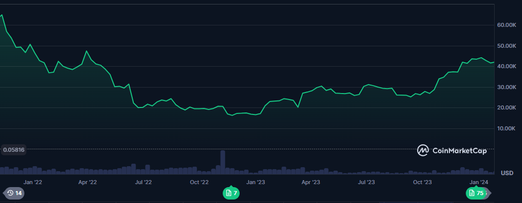 Misalnya, Bitcoin jatuh sekitar 75% dari sekitar US$65.000 menjadi hampir US$16.000 antara November 2021 dan November 2022 selama periode inflasi yang melonjak (bertentangan dengan narasi “lindung nilai inflasi”). Kemudian pulih lebih dari 112% pada November 2023 dan mencapai sekitar US$34.000 di tengah pemulihan pasar yang lebih luas.