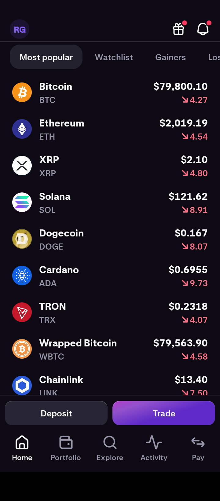2. Pilih XRP: Buka aplikasi dan pilih XRP. Di aplikasi Kraken, XRP akan muncul di layar beranda di bawah tab paling populer — jadi kamu tidak perlu mencarinya. Untuk aplikasi lain, kamu mungkin harus menggunakan tab pencarian untuk menemukan XRP.