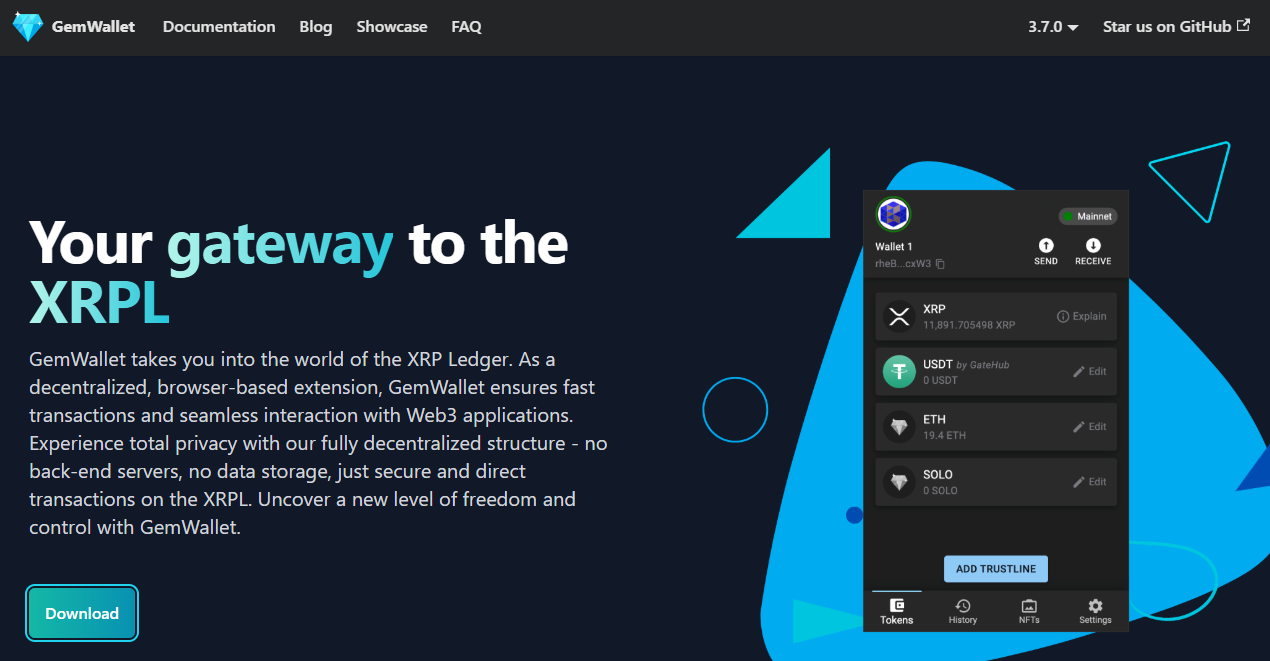 1. Unduh dompet: Arahkan ke situs web resmi GemWallet. Pilih Unduh untuk memulai penginstalan.