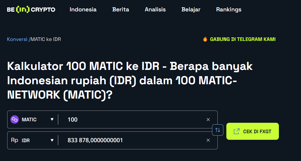 Bagaimana Cara Cek Harga Polygon (MATIC) ke Rupiah?