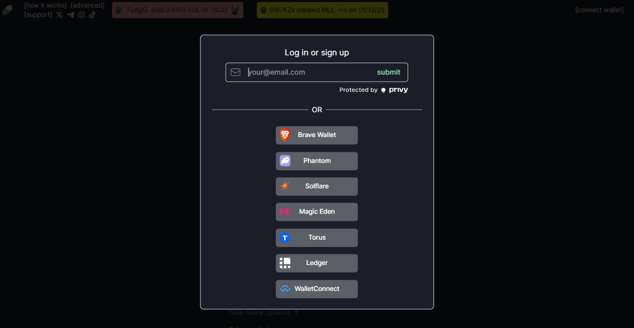 Kamu juga dapat masuk menggunakan alamat email. Pump.fun memang menerapkan pemblokiran geografis. Jadi, kamu mungkin harus menggunakan VPN untuk menyelesaikan proses ini.