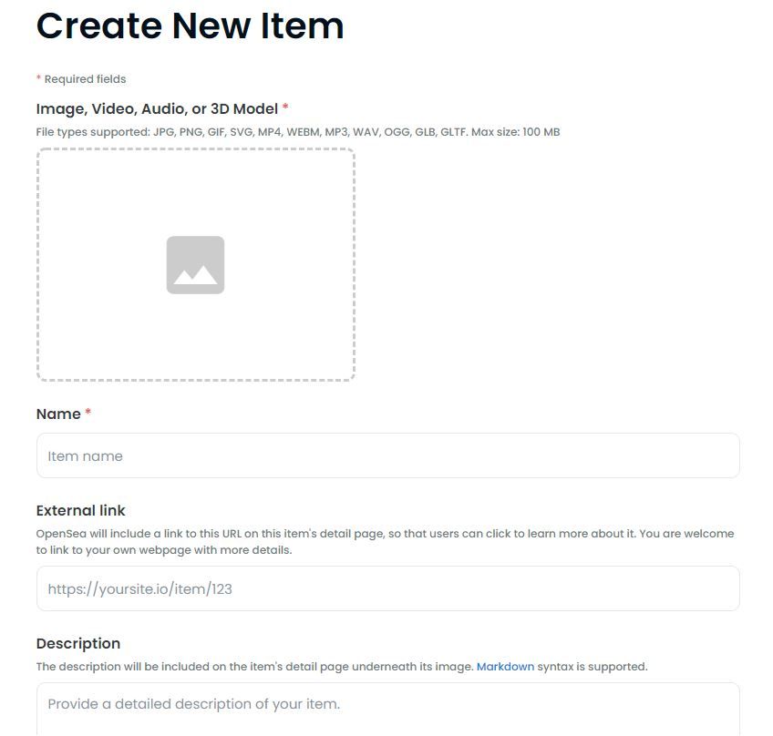 Setiap NFT yang sudah kamu buat di OpenSea perlu dilengkapi dengan beberapa detail informasi berikut: