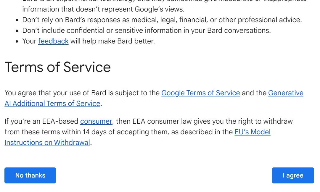 - Tetap realistis dengan batasan Bard: Meskipun AI dapat memberikan respon yang canggih, perlu mengingat bahwa itu tetap merupakan model berbasis teks dan memiliki keterbatasan. Jangan mengandalkan sepenuhnya pada AI untuk keputusan keuangan atau saran investasi. Selalu lakukan penelitian lebih lanjut dan konsultasikan dengan profesional yang kompeten dalam bidang yang kamu minati.