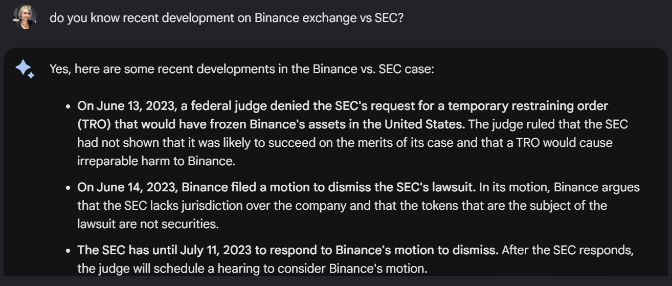 - Chatbot ini mungkin tidak mendapatkan informasi terbaru. Google Bard terus diperbarui dengan informasi baru, tetapi mungkin saja ia tidak mendapatkan informasi terbaru tentang investasi crypto. Hal ini dapat menyebabkan kamu membuat keputusan investasi berdasarkan informasi yang sudah kadaluarsa.