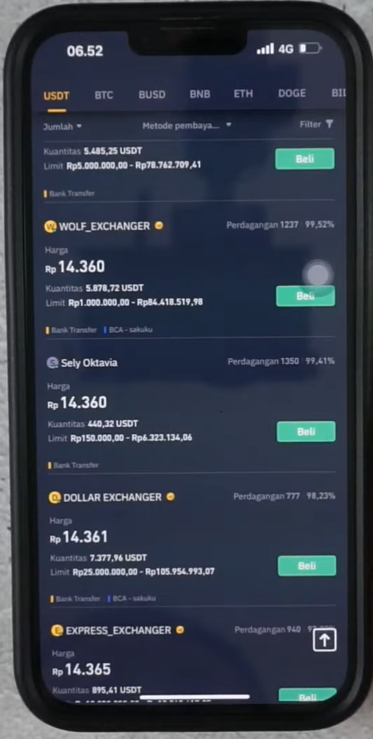 Terpenting juga dalam memilih merchant P2P trading adalah metode pembayaran yang mereka sediakan agar dana bisa terkirim. Jadi, pastikan metode pembayaran sesuai dengan yang kamu miliki. Misalnya, rekening bank yang kamu miliki adalah Bank BCA, pilih merchant yang juga menyediakan pembayaran Bank BCA. Atau kamu juga bisa memilih wallet seperti OVO, Dana bila ada merchant yang menyediakan wallet payment tersebut.