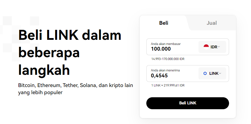 Masukkan nominal yang ingin kamu beli di kolom fiat, misalnya Rp1.000.000. Nantinya, sistem OKX akan menghitung secara otomatis berapa jumlah koin Chainlink (LINK) yang bisa dibeli dengan nominal fiat yang kamu masukkan.