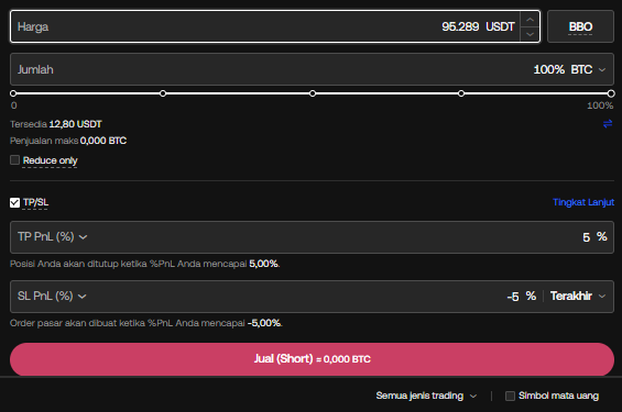 Sponsored SponsoredPilih Kontrak: Pilih kontrak berjangka untuk mata uang kripto yang ingin kamu short, misalnya BTC/USDT.