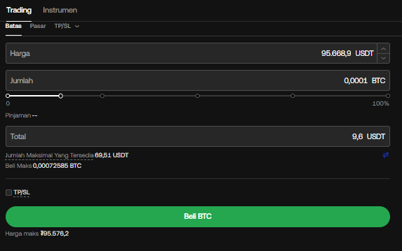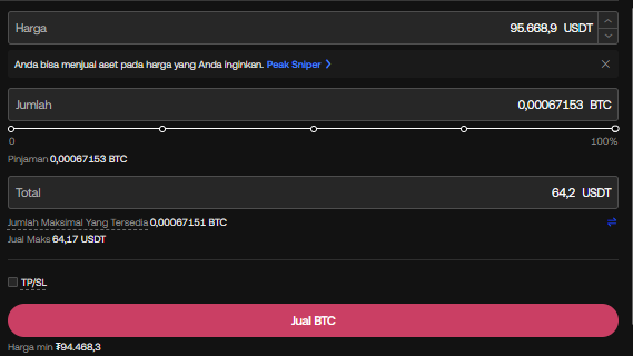 Pinjam Aset: Setelah masuk di akun margin, pilih mata uang kripto yang ingin kamu short (misalnya, Bitcoin). Klik “Pinjam” untuk melihat berapa banyak yang dapat kamupinjam.