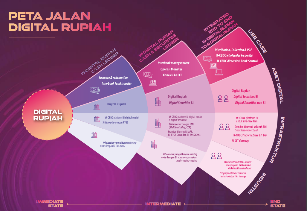 Selanjutnya, dalam perkembangan terkini, Bank Indonesia meluncurkan White Paper Digital Rupiah sebagai rancangan dari CBDC Indonesia. Dokumen sepanjang 43 halaman tersebut memaparkan alasan pengembangan mata uang digital ini, desain infrastruktur dan teknologi, utilitas, hingga peta jalan dan sinergi di dunia internasional. Proyek pengembangan CBDC ini bernama Proyek Garuda.