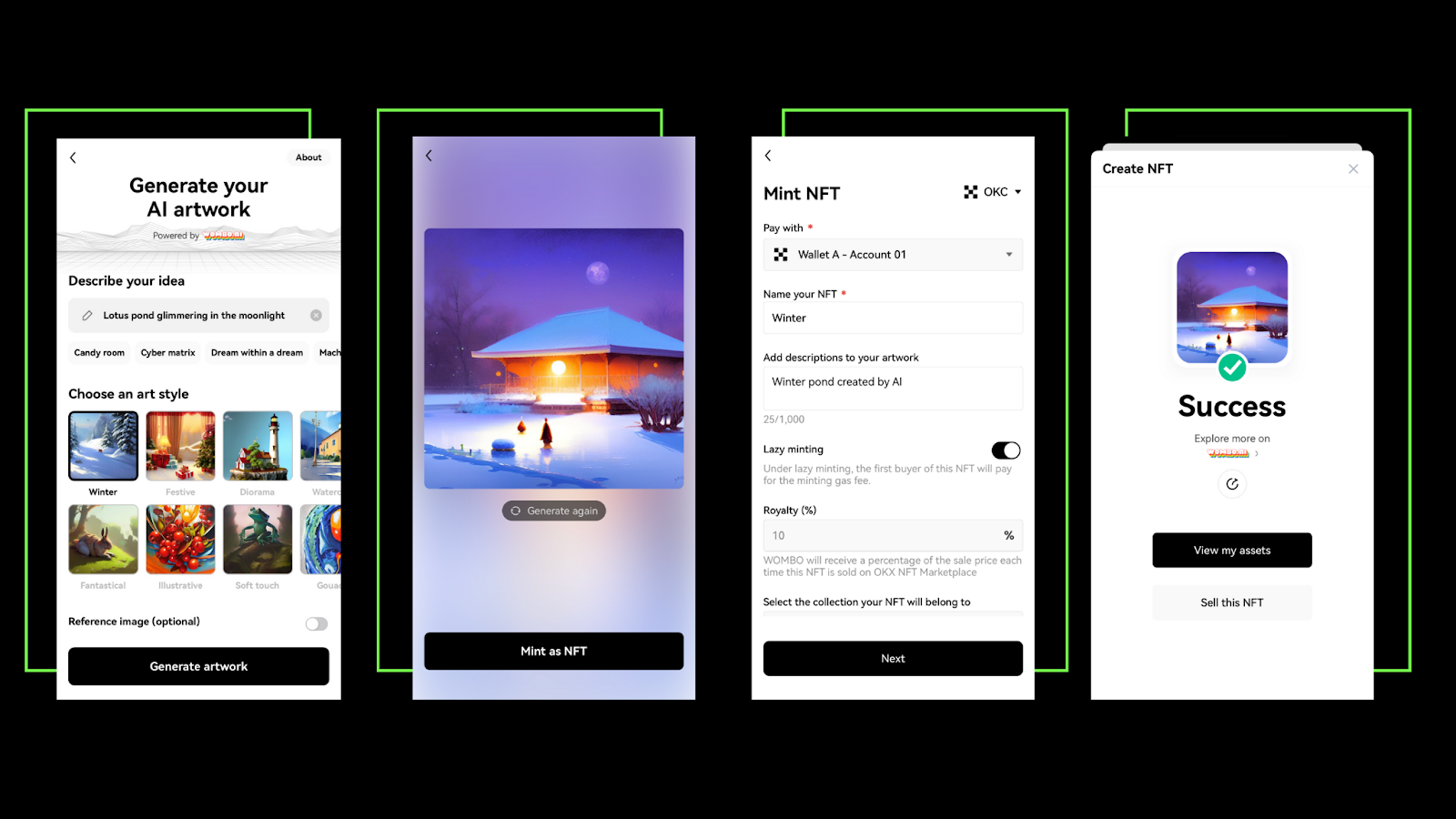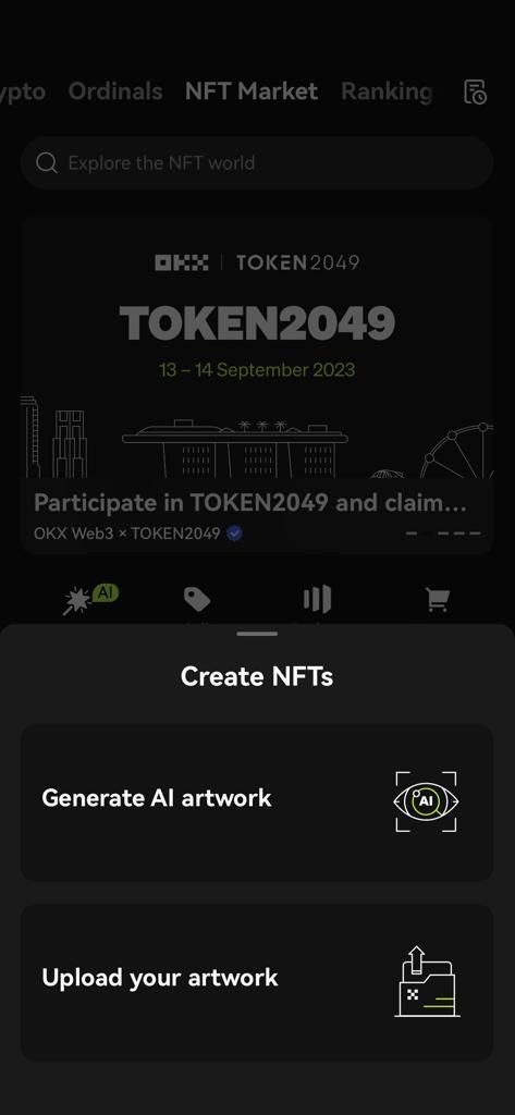OKX NFT Marketplace bekerja sama dengan Wombo.ai untuk menyediakan fitur membuat NFT dengan bantuan artificial intelligence (AI) gratis. Kamu bisa dengan mudah membuat NFT, baik dengan AI atau upload gambar yang kamu miliki sendiri. Berikut cara membuat NFT menggunakan AI yang terintegrasi dengan OKX NFT.