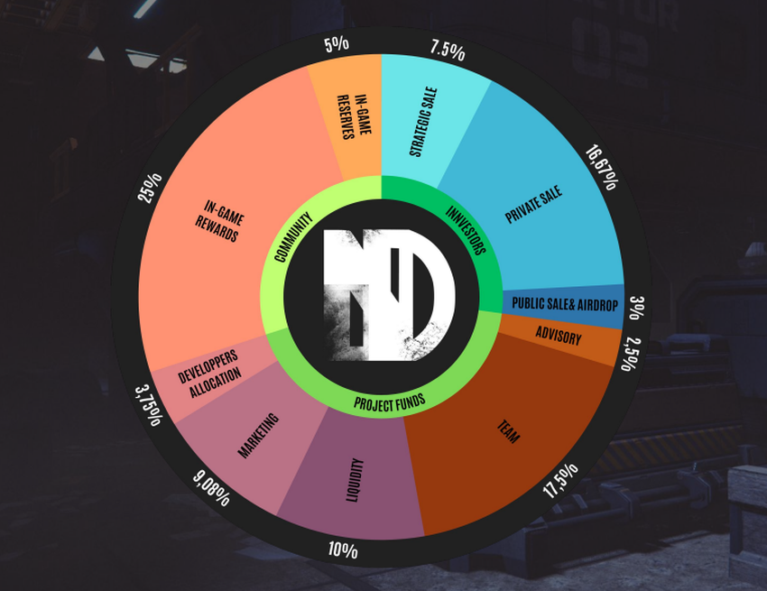 - Model token deflasi: 20% dari $ND token yang digunakan dalam transaksi dibakar. Ini mengurangi pasokan dari waktu ke waktu dan berpotensi meningkatkan nilai token.