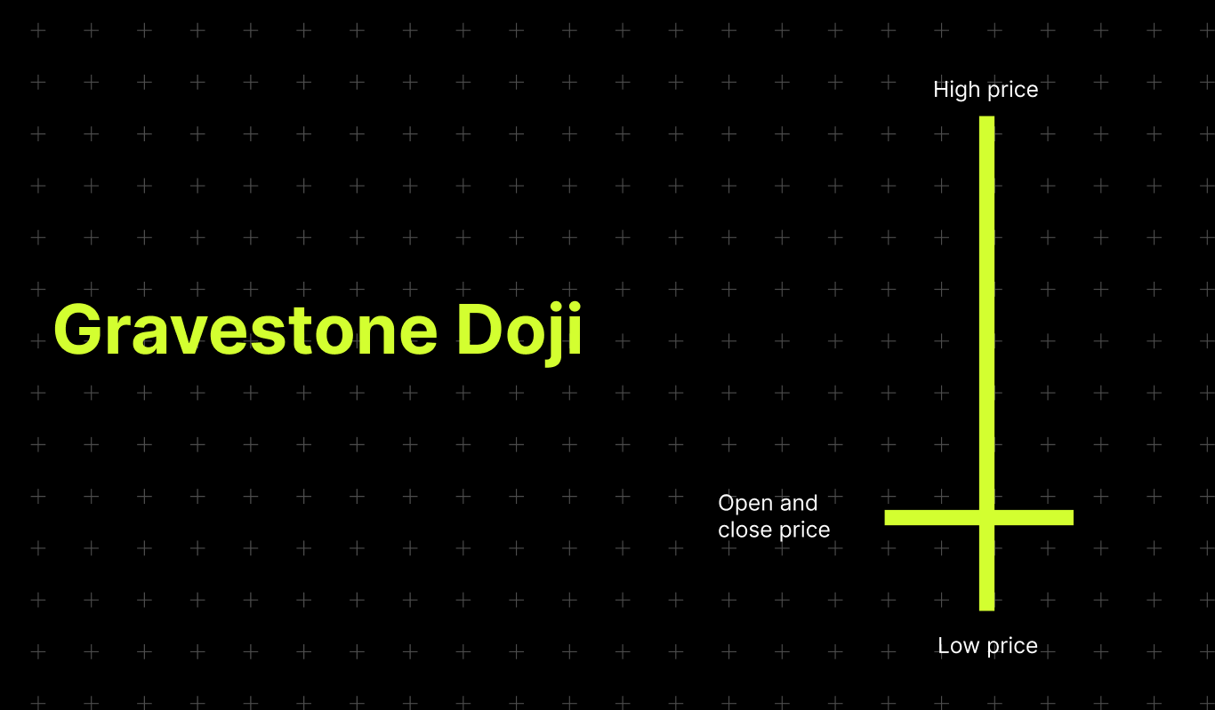 - Gravestone Doji – Candle pembalikan bearish dengan sumbu atas yang panjang dan harga open/close mendekati titik terendah (low).