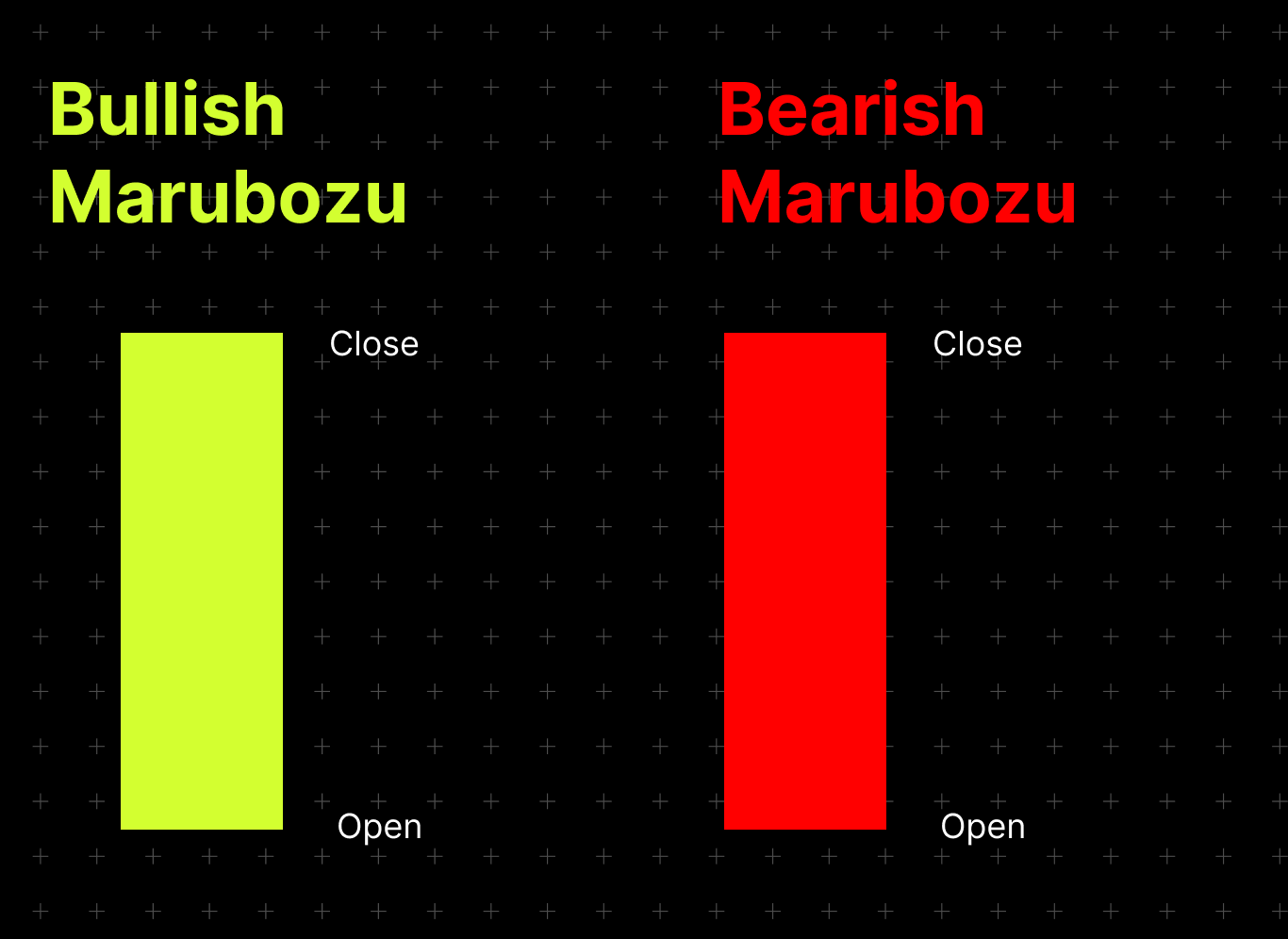 Marubozu putih atau hijau menunjukkan tren bullish, sementara marubozu hitam atau merah menunjukkan tren bearish. Para trader mencari candlestick marubozu untuk membantu mengidentifikasi tren yang kuat di pasar.