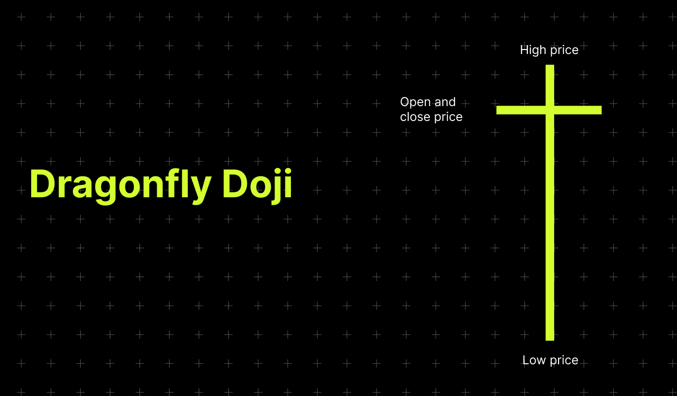 Dragonfly Doji – Bisa menjadi sinyal bullish atau bearish (tergantung konteks) dengan sumbu bawah yang lebih panjang dan harga open/close mendekati harga tertinggi.