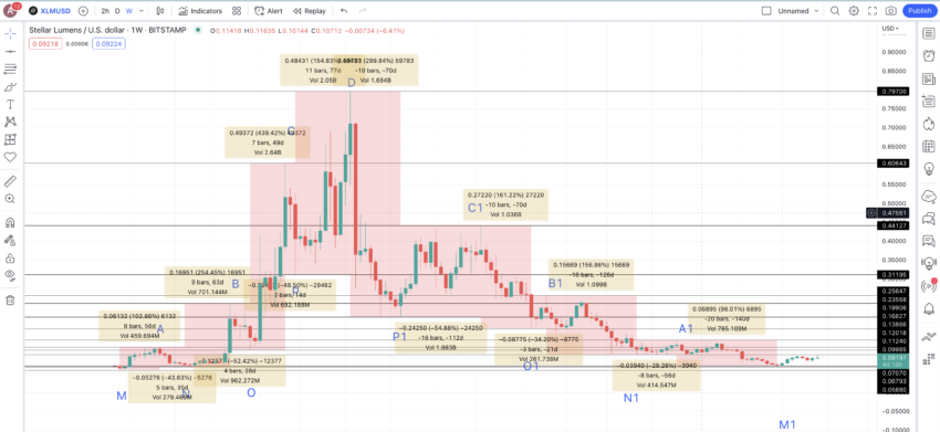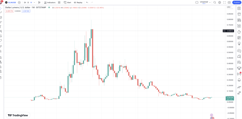 Berikut adalah grafik mingguan XLM untuk membantu kamu memperkirakan pergerakan harga jangka panjang dan jangka pendek yang akan datang.