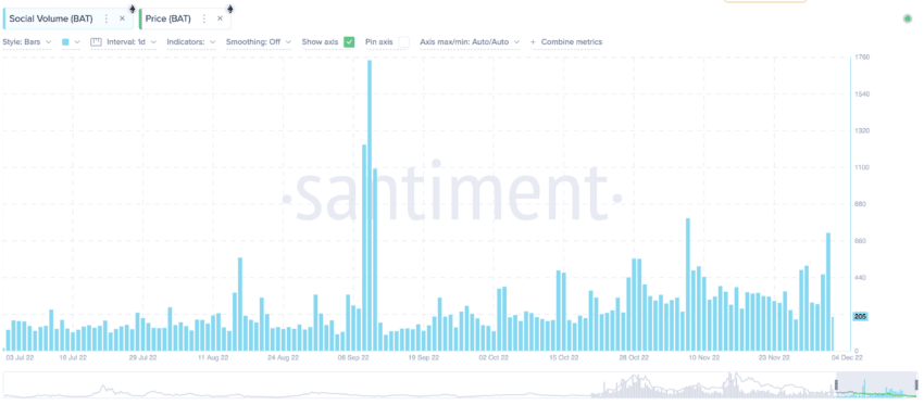 Sementara itu, obrolan sosial seputar BAT masih cukup rendah untuk saat ini. Puncaknya muncul pada awal September, tetapi sebagian besar hanya berfungsi sebagai katalis penurunan harga.