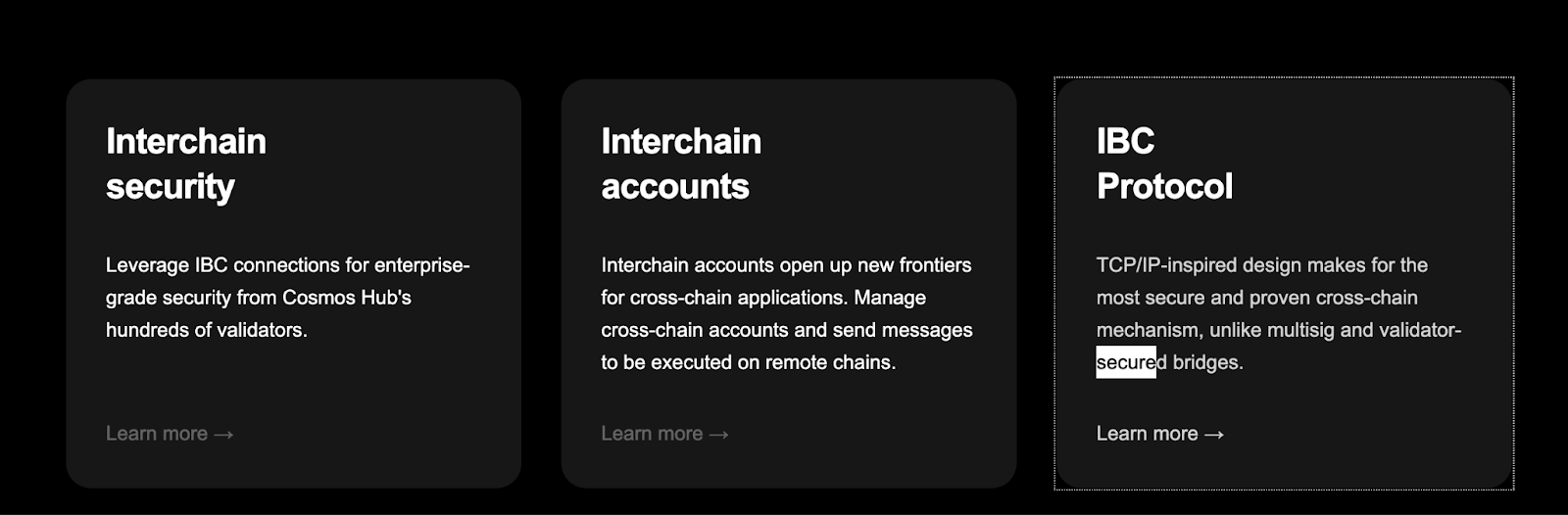 Cosmos Hub memungkinkan transaksi lintas rantai yang aman menggunakan Protokol Inter-Blockchain Communication (IBC). Ini memastikan bahwa aset dan data bergerak dengan aman di antara jaringan yang terhubung, menjaga integritas selama transaksi. Cosmos mengurangi risiko transfer yang tidak lengkap atau dimanipulasi, memastikan setiap langkah — mulai dari mengirim hingga menerima — mendapat penanganan dengan aman.