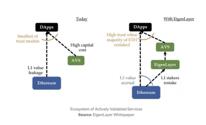 Ingatlah bahwa EigenLayer, sebagai middleware, memungkinkan ETH Beacon Chain dan token liquid, atau tanda terima Ether yang distaking, untuk dipertaruhkan kembali.