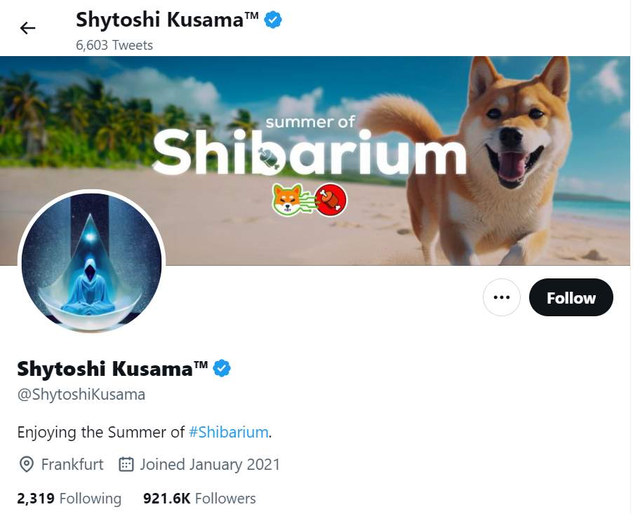 Kemudian, Shytoshi Kusama pun muncul untuk mengambil alih setelah Ryoshi pencipta Shiba Inu pergi. Shytoshi Kusama adalah nama samaran dari pengembang utama koin Shiba Inu. Dia bertanggung jawab atas pengembangan keseluruhan proyek, termasuk roadmap, pemasaran, dan keterlibatan komunitas.