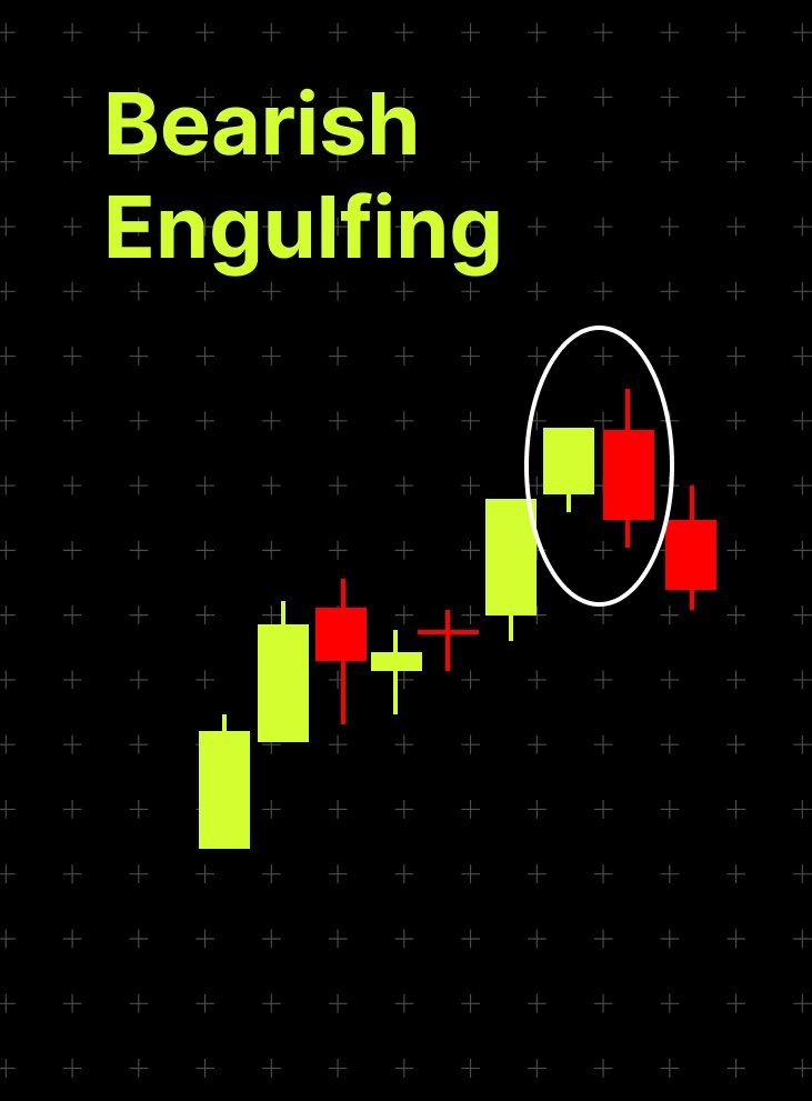 Pola bearish engulfing terbentuk ketika candlestick bullish kecil diikuti oleh candlestick bearish yang lebih besar dan sepenuhnya menelan candle sebelumnya. Bearish engulfing menunjukkan bahwa bear telah mengambil kendali pasar, menunjukkan potensi pembalikan atau kelanjutan tren bearish.