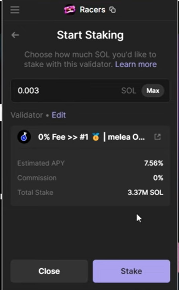 Karena kamu bukan validator, kamu bisa mendelegasikan token SOL kamu pada validator aktif. Pool yang menawarkan imbal hasil (return) tertinggi bisa menjadi pertimbangan kamu.