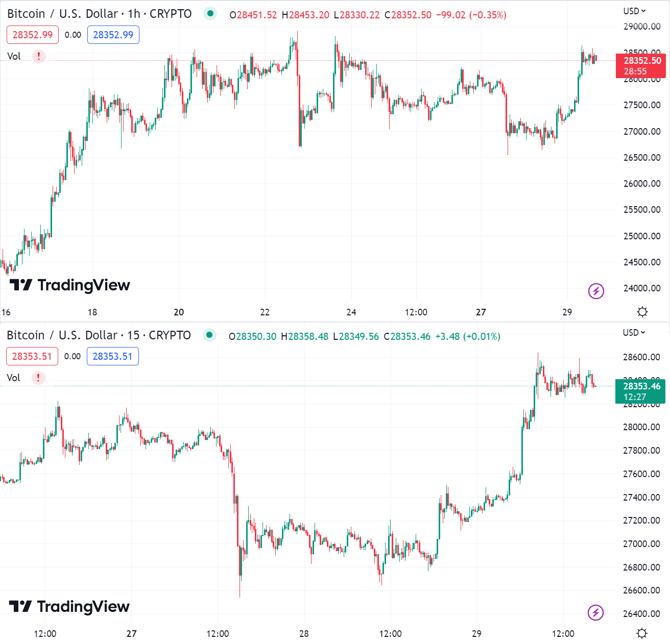Dalam trading crypto, penggunaan interval waktu yang tepat sangat penting untuk mengidentifikasi tren harga yang sedang terjadi serta mengetahui kapan waktu yang tepat untuk membeli atau menjual aset kripto. Trader perlu mempertimbangkan berbagai faktor-faktor seperti volatilitas pasar, kecepatan akses internet, dan preferensi gaya trading pribadi.
