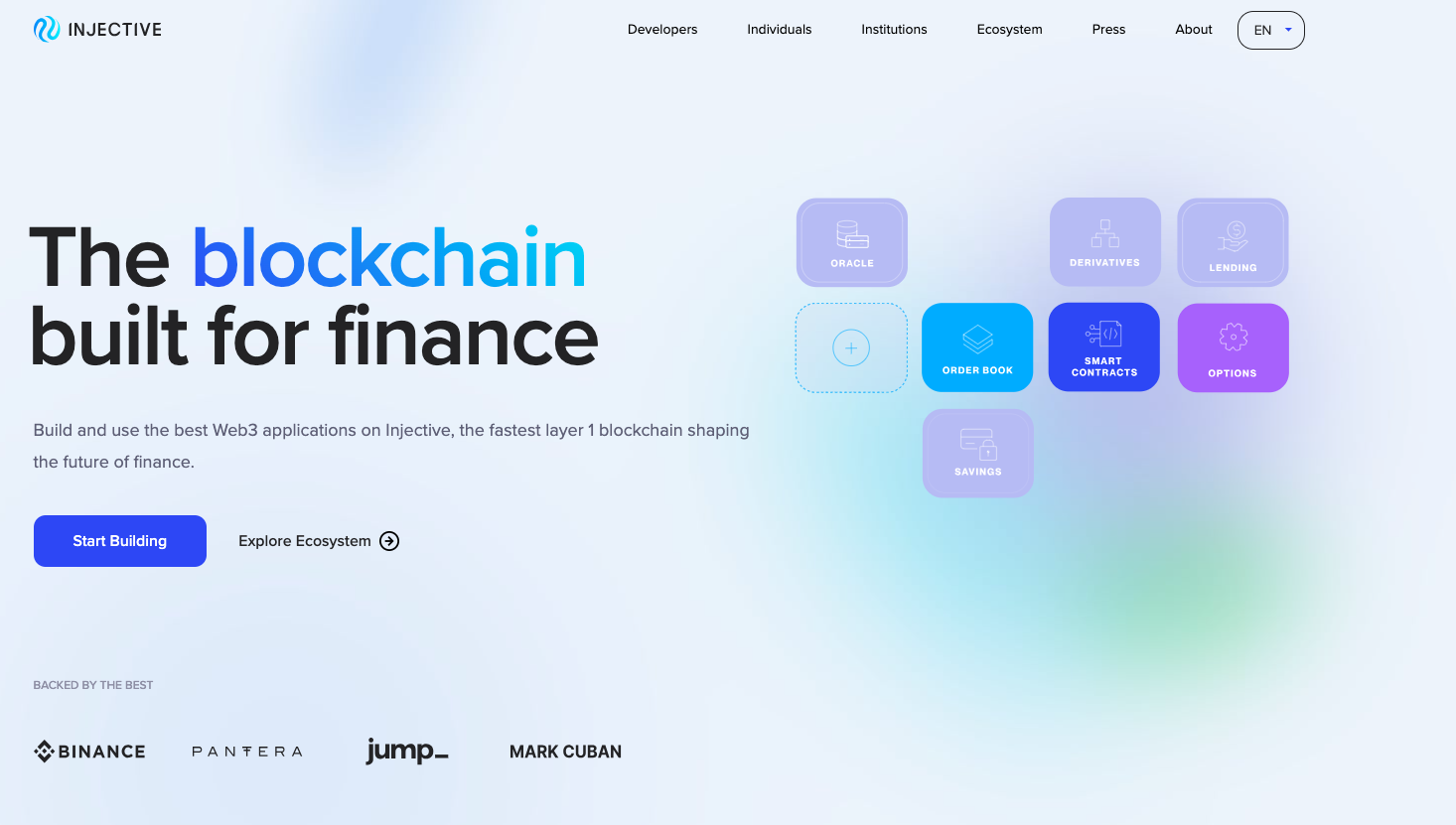 Proyek Injective adalah platform DeFi yang dikenal dengan blockchain berkinerja tinggi dan interoperable yang dioptimalkan untuk membuat dan memperdagangkan berbagai instrumen keuangan. Platform ini memungkinkan penciptaan pasar baru, termasuk derivatif dan futures, dalam ekosistem yang sepenuhnya terdesentralisasi dan permissionless.