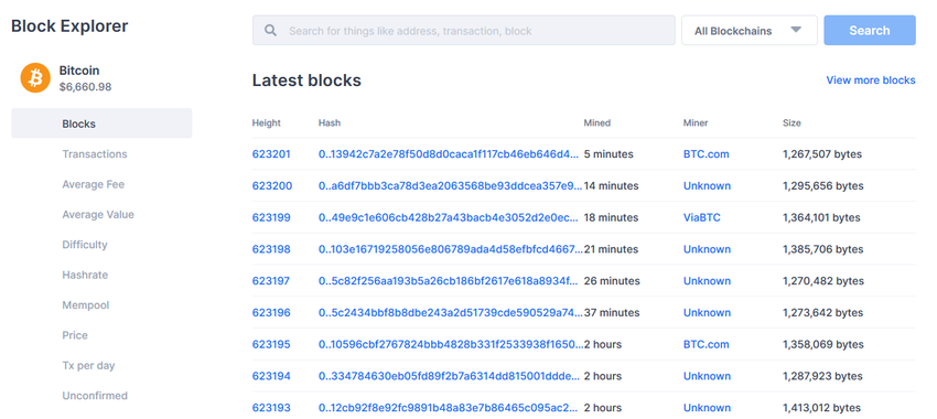 - Hal pertama yang harus diperhatikan adalah daftar blok terbaru yang telah selesai ditambang. Namun, perlu diketahui juga bahwa tidak semua blockchain bisa diamankan oleh penambangan. Terlepas dari prosesnya, setiap explorer harus dapat menampilkan blok yang paling baru dibuat.