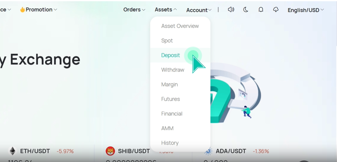 Pertama-tama sebelum trading crypto tentu kamu harus mengisi akun kamu. Lakukan deposit dan pencairan (withdrawal) di CoinEx dengan langkah-langkah berikut ini: